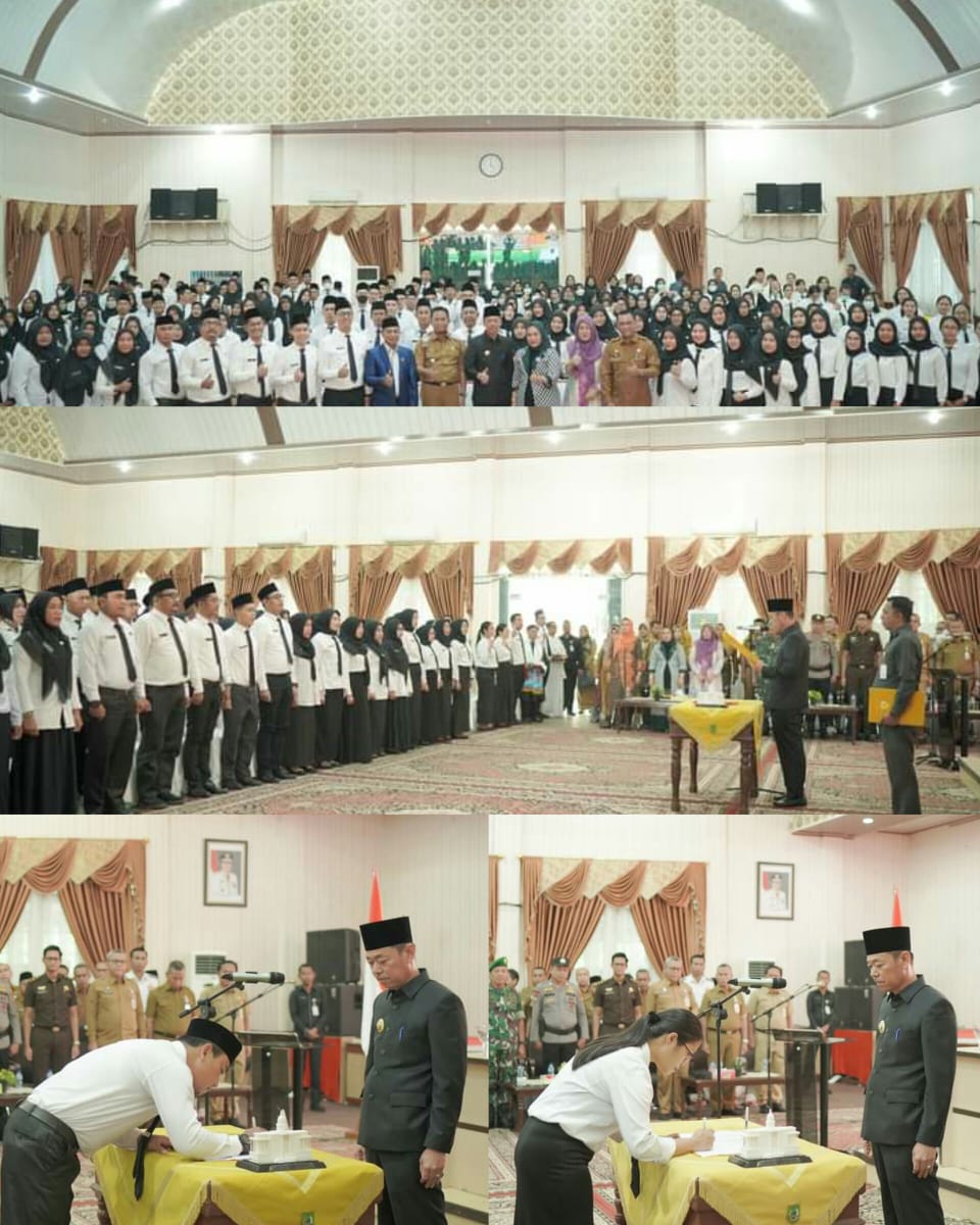 Rokan Hilir | metroinvestigasi.id – Bupati Rokan Hilir (Rohil) Afrizal Sintong menyerahkan ratusan SK PNS Formasi Tahun 2019 sekaligus melakukan pengambilan sumpah PNS serta pelantikan dan sumpah jabatan fungsional tertentu dilingkungan Pemkab Rohil, Selasa (7/3/2023) di gedung Misran Rais Bagansiapiapi.