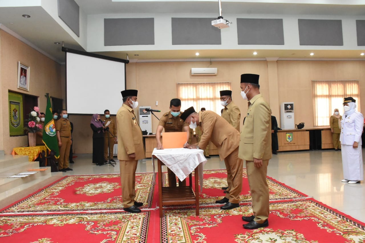 Serdang Bedagai | metroinvestigasi.id – Bupati Serdang Bedagai (Sergai) H. Darma Wijaya didampingi Wakil Bupati Sergai H. Adlin Umar Yusri Tambunan, ST, MSP, melaksanakan pelantikan Pejabat dengan Jabatan Tinggi Pratama (JPT) dan Administrator di Lingkungan Pemkab Sergai, bertempat di Aula Sultan Serdang Kompleks Kantor Bupati, Sei Rampah, Senin (05/07/2021).