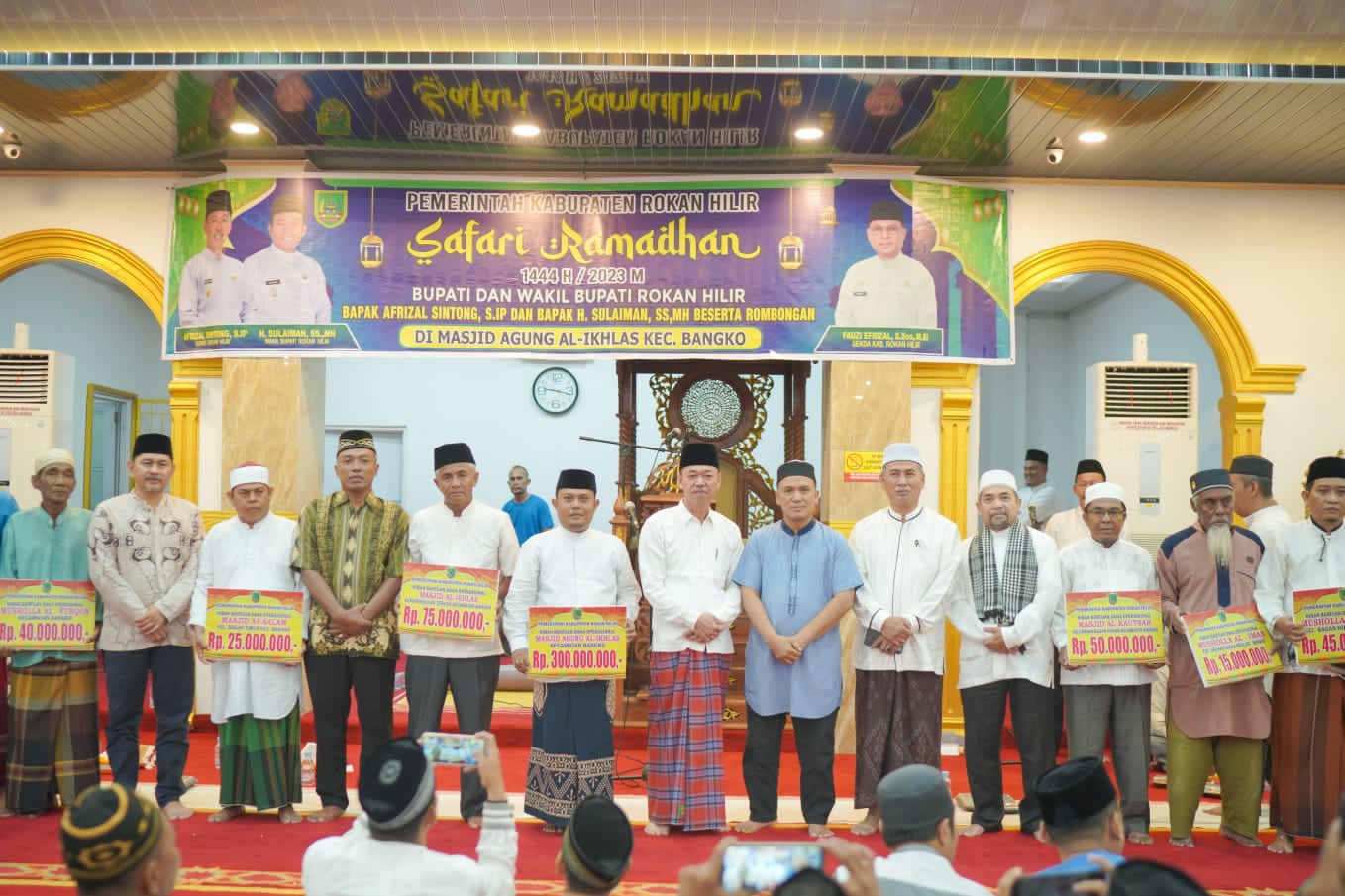 Selain melaksanakan safari ramadhan sebut Bupati, juga dilakukan penyerahan bantuan kepada 25 Masjid dan Musholla yang ada di Kecamatan Bangko.