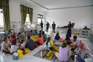 Ketua Dekranasda Pakpak Bharat, Ny.Juniatry Franc Tumanggor membuka pelaksanaan Pelatihan membayu dan aneka kreasi membayu dari bahan pandan di Balai Diklat BKPSDM Pakpak Bharat (25-26/05/2023).
