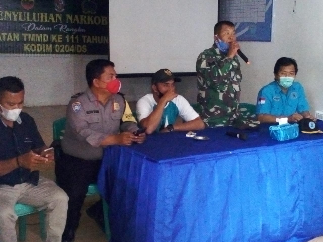 Deli Serdang | metroinvestigasi.id – Bersama Badan Narkotika Nasional Kabupaten (BNNK), Satgas TMMD ke-111 TA 2021 Kodim 0204/DS memberi warning (peringatan) kepada warga tentang dampak buruk narkoba.
