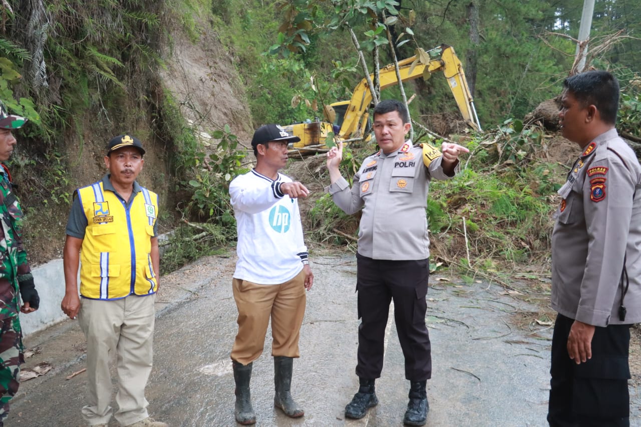 Simalungun|metroinvestigasi.id – Upaya penanganan darurat bencana alam tanah longsor yang mengganggu jalur transportasi di Kabupaten Simalungun tengah dilakukan secara intensif. Kapolres Simalungun, AKBP Ronald F. C. Sipayung, S.H., S.I.K., M.H., secara langsung telah memantau proses penanganan longsoran yang terjadi di Nagori Purba Sipinggan, Kecamatan Purba menuju Haranggaol Horison pada hari Rabu tanggal 23 November 2023, dari jam 14.00 WIB hingga selesai.