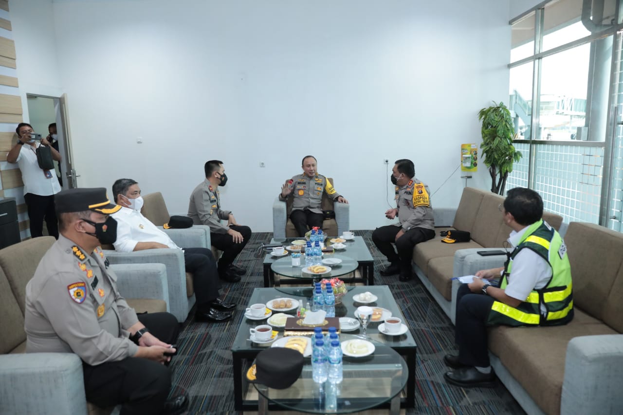 Kapolresta Deli Serdang Dampingi Kapolda Sumut Sambut Kedatangan Irwasum Polri di Bandara KNIA