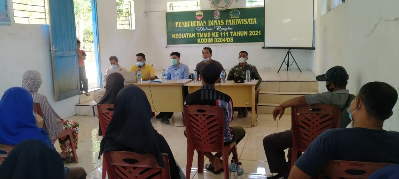 Untuk melengkapi kegiatan non fisik, Satgas TMMD menggandeng Dinas Pemuda, Olahraga, Budaya dan Pariwisata (Disporabudpar) melaksanakan penyuluhan pariwisata.Kegiatan dilakukan di Desa Mabar, Kecamatan Bangun Purba, Kabupaten Deliserdang, Sabtu (3/7/2021).