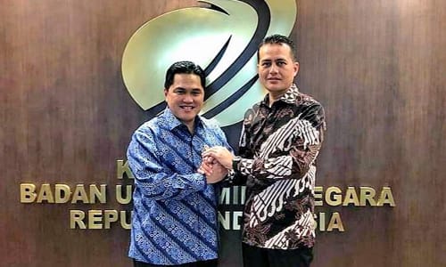 “Untuk percepatan pembangunan di Sumatera Utara kita akan dukung penuh,” ujar Menteri BUMN Erick Thohir saat ditemui Wakil Gubernur Sumut Musa Rajekshah di Kantor Kementerian BUMN Jalan Medan Merdeka Selatan Jakarta Pusat, Jumat (7/2). Turut hadir Wakil Ketua DPRD Sumut Harun Mustafa Nasution serta Kepala Dinas Bina Marga dan Bina Konstruksi Sumut Effendy Pohan.