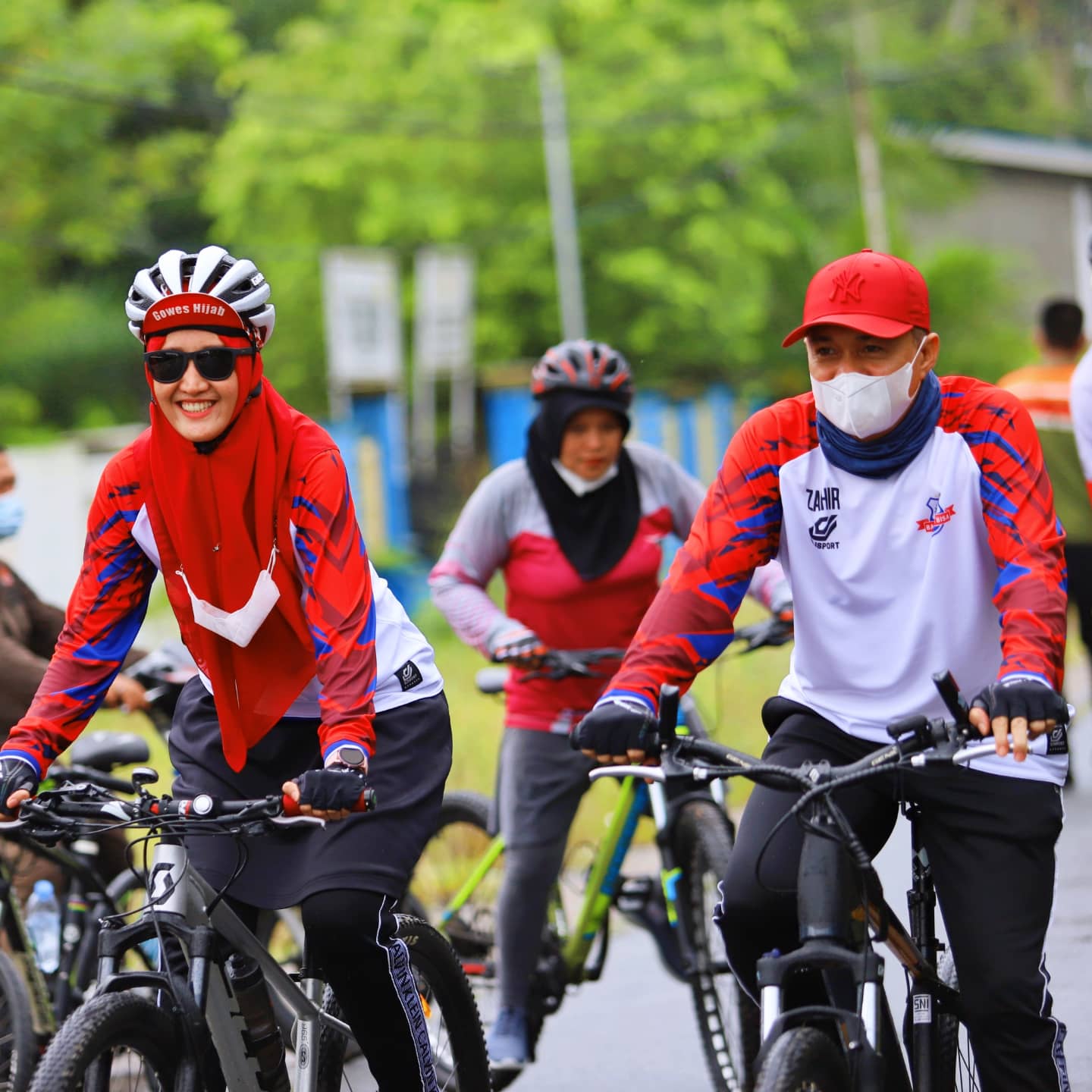 Walaupun diguyur hujan sepanjang perjalanan, Bupati Zahir dan peserta sepeda santai lainnya tetap semangat mengayuh sepedanya sampai finis.