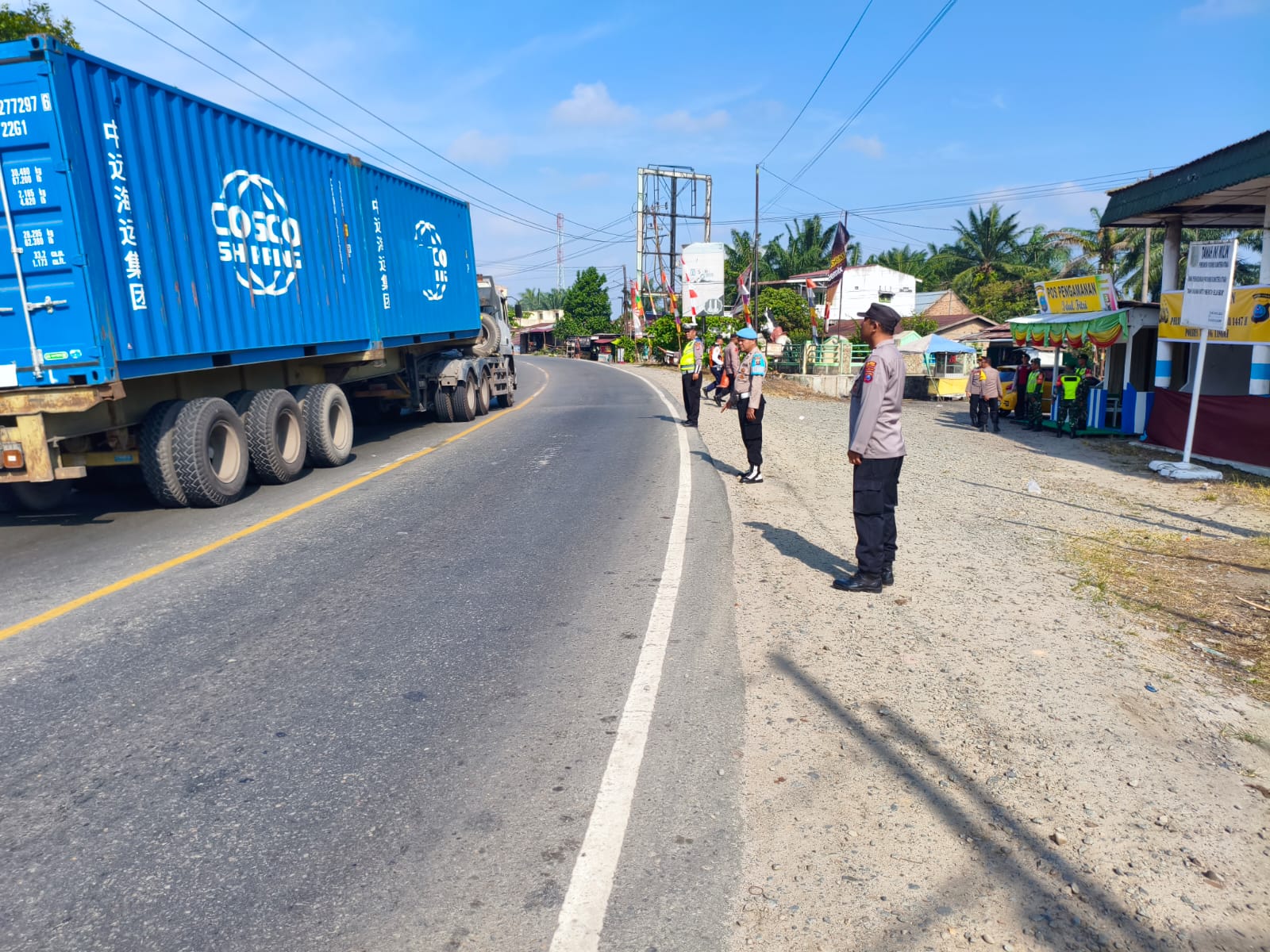 Dalam pelaksanaannya, petugas melakukan pengaturan lalu lintas di sepanjang jalan lintas depan Pos Pam guna memastikan arus kendaraan tetap tertib dan lancar. Selain itu, petugas juga melaksanakan live report untuk melaporkan kondisi situasi lalu lintas secara langsung dari lokasi Pos Pam Desa Binjai.