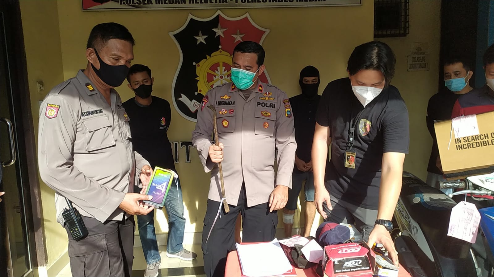 “Pada saat kami akan melakukan pengembangan dan penangkapan terhadap salah satu pelaku berinisial MS (38) tadi, pelaku HT (24) alamat Jalan Pembangunan Helvetia Timur melakukan perlawanan, sehingga kami mengambil tindakan tegas dan terukur” kata Kapolsek Medan Helvetia Kompol Pardamean Hutahaean.SH.SIK.MH.