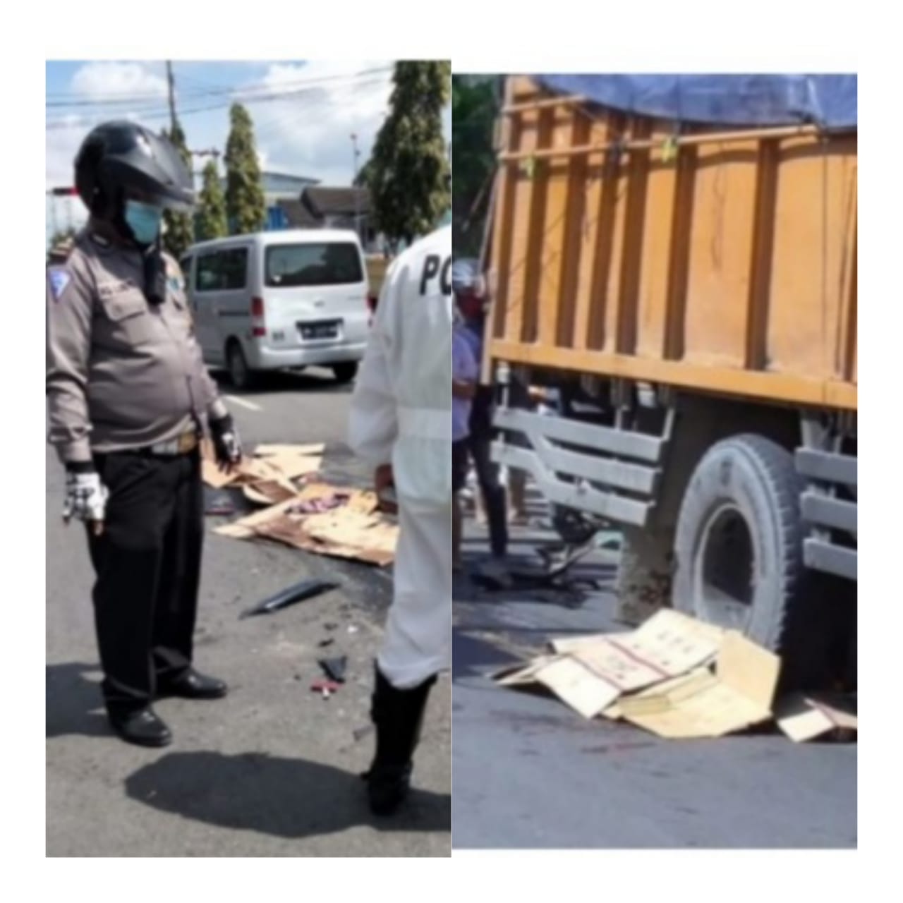 Sang sopir langsung menghentikan laju kenderaannya, dimana saat itu posisi tubuh korban tengah berada dibawah ban belakang mobil truk.