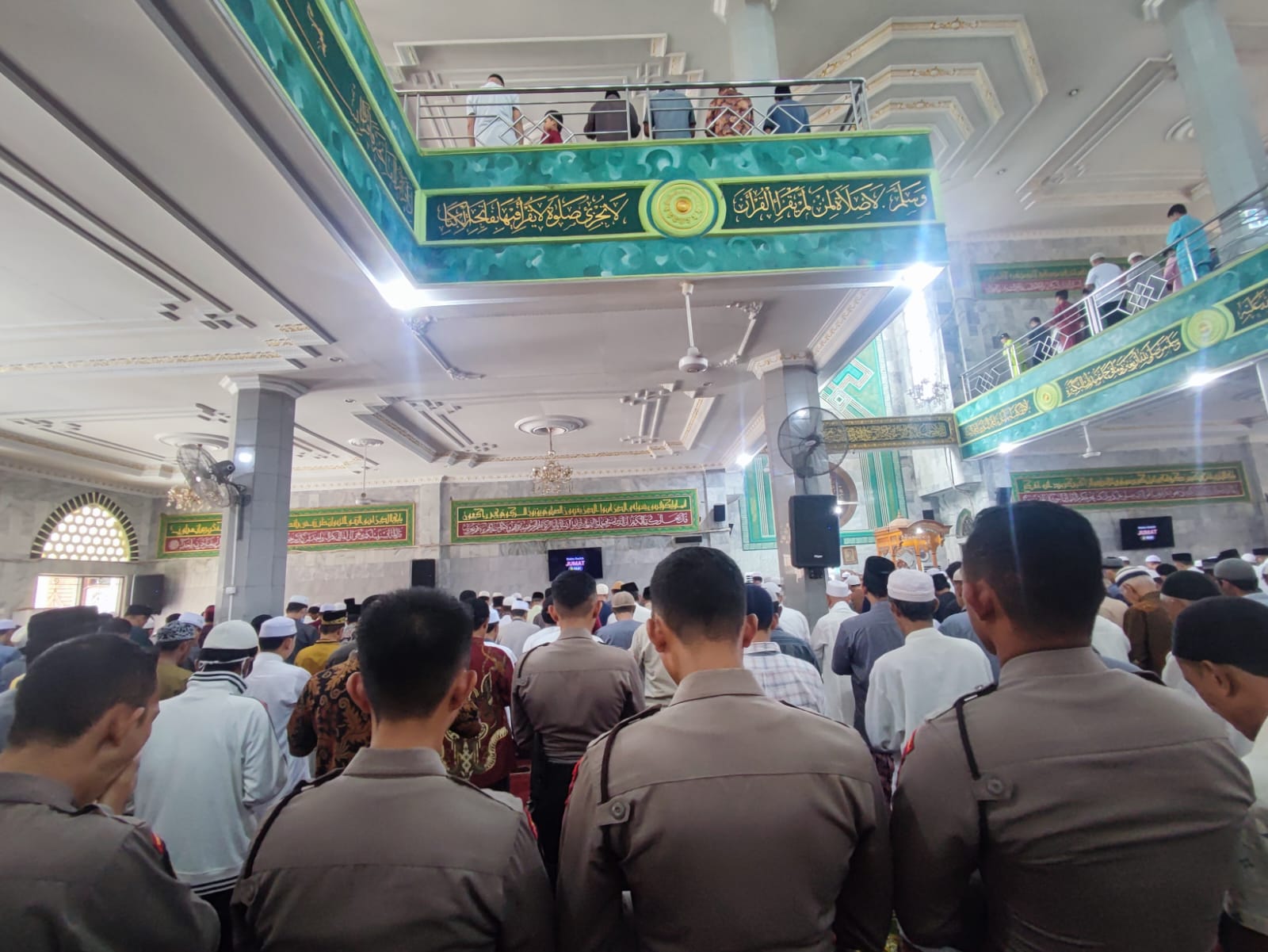 Kali ini, kegiatan Sholat Jum’at keliling dilaksanakan di Mesjid Nurul Wathan Jalan Perintis Tembilahan , dan dipimpin oleh Bripka Indra Gunawan beserta 8 Pers Sat Samapta Polres Inhil.
