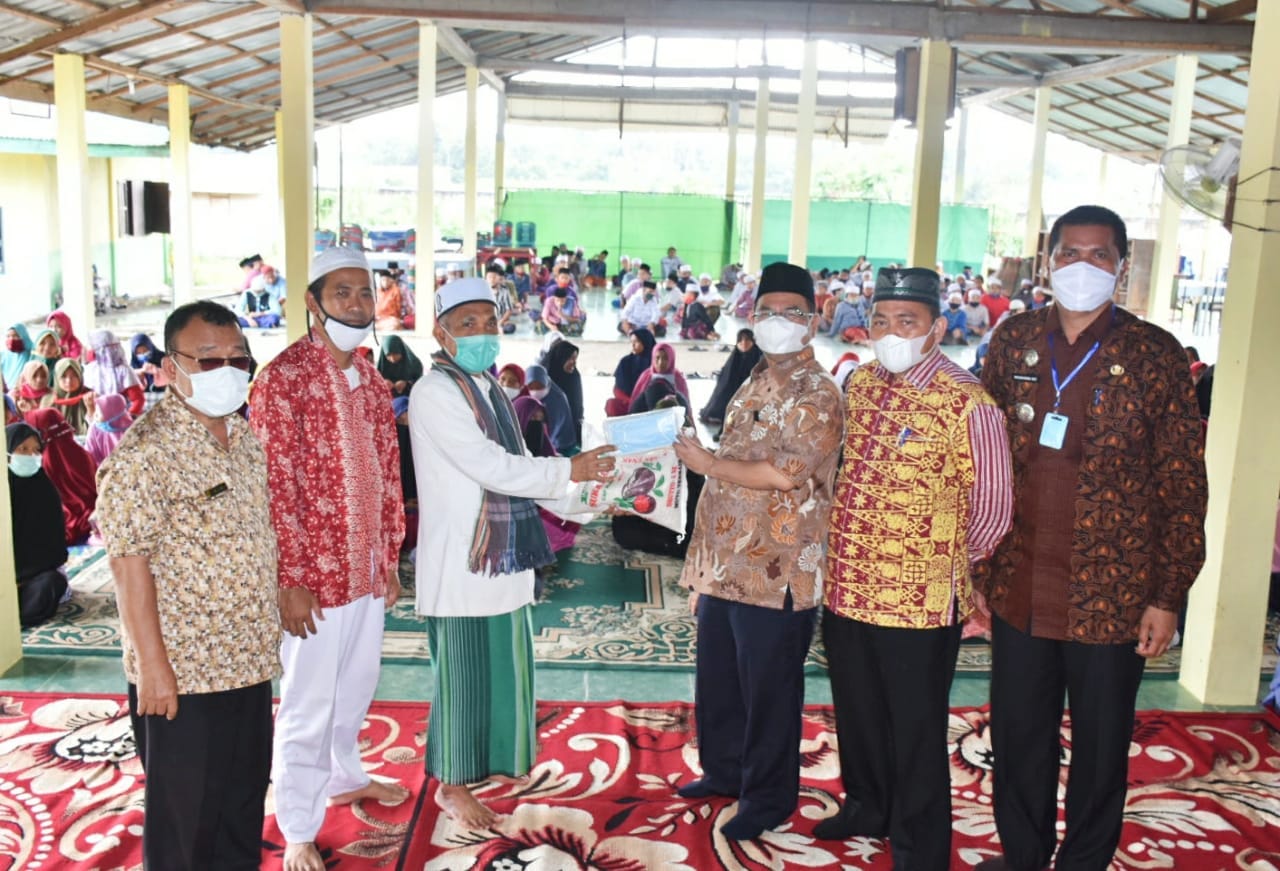 “ Saya berharap dengan waktu yang tidak lama menjabat Pjs. Bupati, kiranya dapat bersilaturahmi dengan unsur masyarakat guna berbuat yang terbaik bagi masyarakat. Beberapa waktu yang lalu saya sudah meminta kepada kepala BPBD agar memberikan sarana prasarana pendukung protokol kesehatan Covid-19 untuk pesantren ini berupa satu set alat pencuci tangan. Kemudian dilanjutkan pada hari ini kami kembali menyerahkan 1.000 masker kepada Pesantren Zakiyun Najah, sehingga telah ada 2M pelaksanaan protokol kesehatan yang kita terapkan yaitu mencuci tangan dan memakai masker, tinggal 1M lagi yaitu menjaga jarak yang harus bersama para santri dan siswa untuk menerapkannya,” sebut Irman.