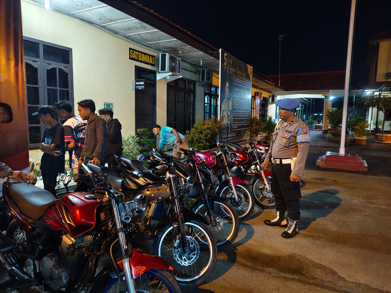 Dalam patroli yang dilakukan di Jalan Merpati dan Jalan Letda Sujono Kelurahan Pinang Mancung Kecamatan Bajenis, petugas berhasil mengamankan enam unit sepeda motor yang diduga akan digunakan untuk balap liar maupun milik para penonton yang ikut menyaksikan aksi tersebut. Adapun kendaraan yang diamankan terdiri dari berbagai jenis, dan merupakan kenderaan yang tidak sesuai spesifikasi.