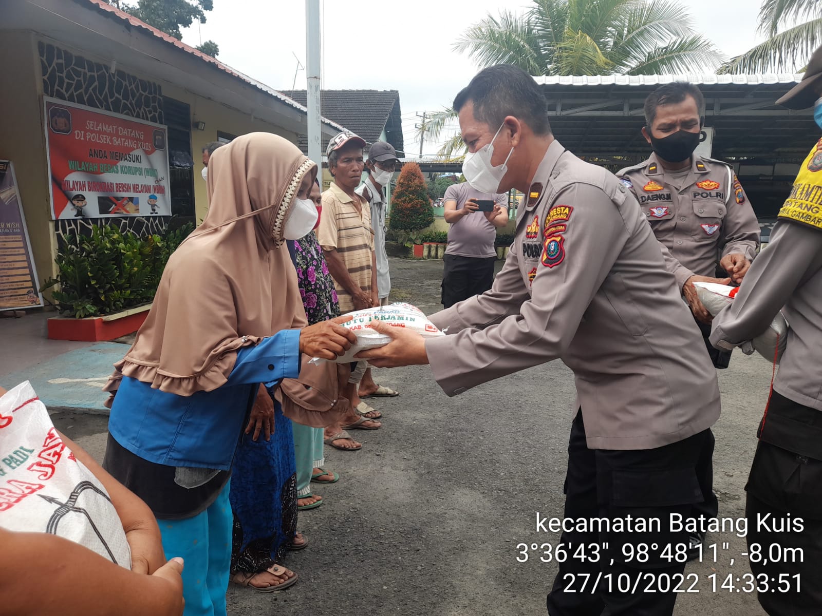 Kapolresta Deli Serdang Kombes Pol Irsan Sinuhaji SIK, MH Melalui Kapolsek Batang Kuis AKP Simon Pasaribu SH , beserta anggota membagikan bansos berupa Beras seberat 5 kg kepada warga masyarakat yang terdampak dari naiknya harga BBM.