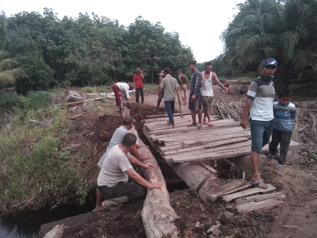 Gotong royong dipimpin langsung Kapolsek Panipahan IPTU Boy Setiawan Sitompul Bersama 2 orang personil polsek dibantu 1 orang dari Kepenghuluan dan 10 Orang dari masyarakat saat memperbaiki Jembatan Penghubung Dusun Sandam Jaya – Dusun Podo Rukun Kepenghuluan Pasir Limau Kapas Kabupaten Rokan Hilir pada Rabu (12/8) kemarin.