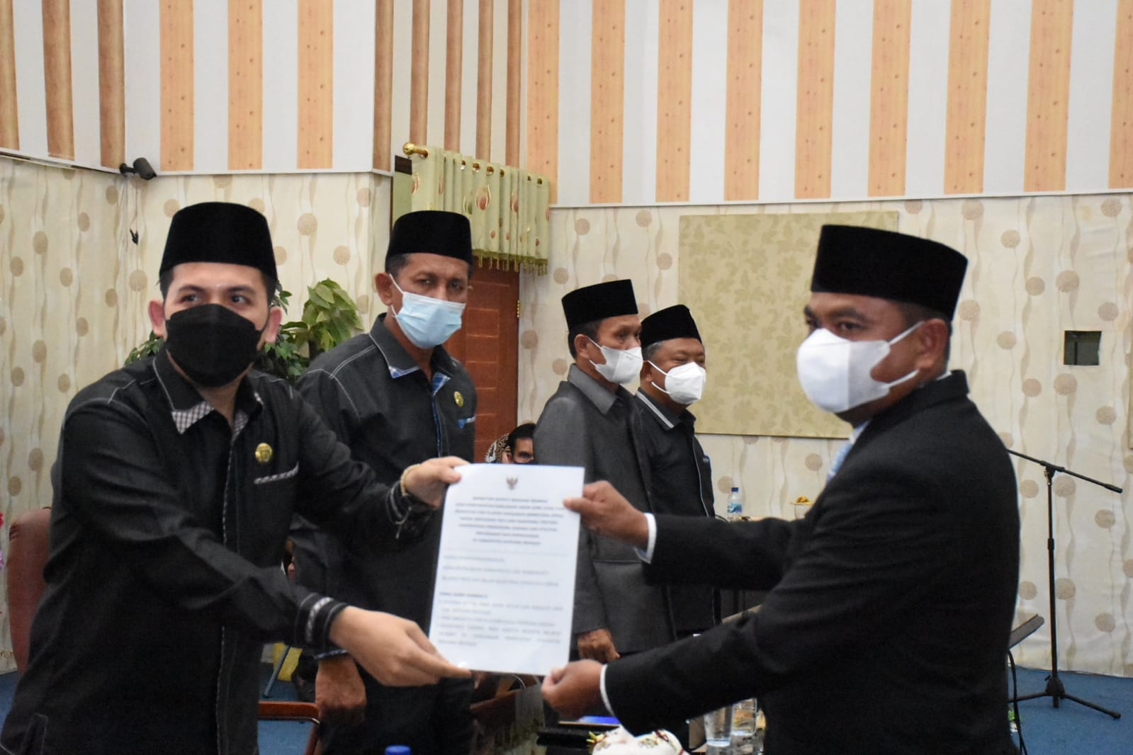 Serdang Bedagai | metroinvestigasi.id – Bupati Serdang Bedagai (Sergai) H. Darma Wijaya hadir dalam rapat paripurna dengan agenda penyampaian Laporan Hasil Pembahasan Gabungan Komisi dan Laporan Hasil Pembahasan Badan Anggaran (Banggar) DPRD serta penandatanganan nota kesepakatan terhadap Kebijakan Umum APBD-Prioritas Plafon Anggaran Sementara (KUA-PPAS) APBD Tahun Anggaran 2022 dan pengambilan keputusan terhadap Ranperda penyerahan prasarana, sarana dan utilitas perumahan dan permukiman Kabupaten Sergai, di ruang rapat DPRD Sergai, Sei Rampah, Selasa (19/10/2021).