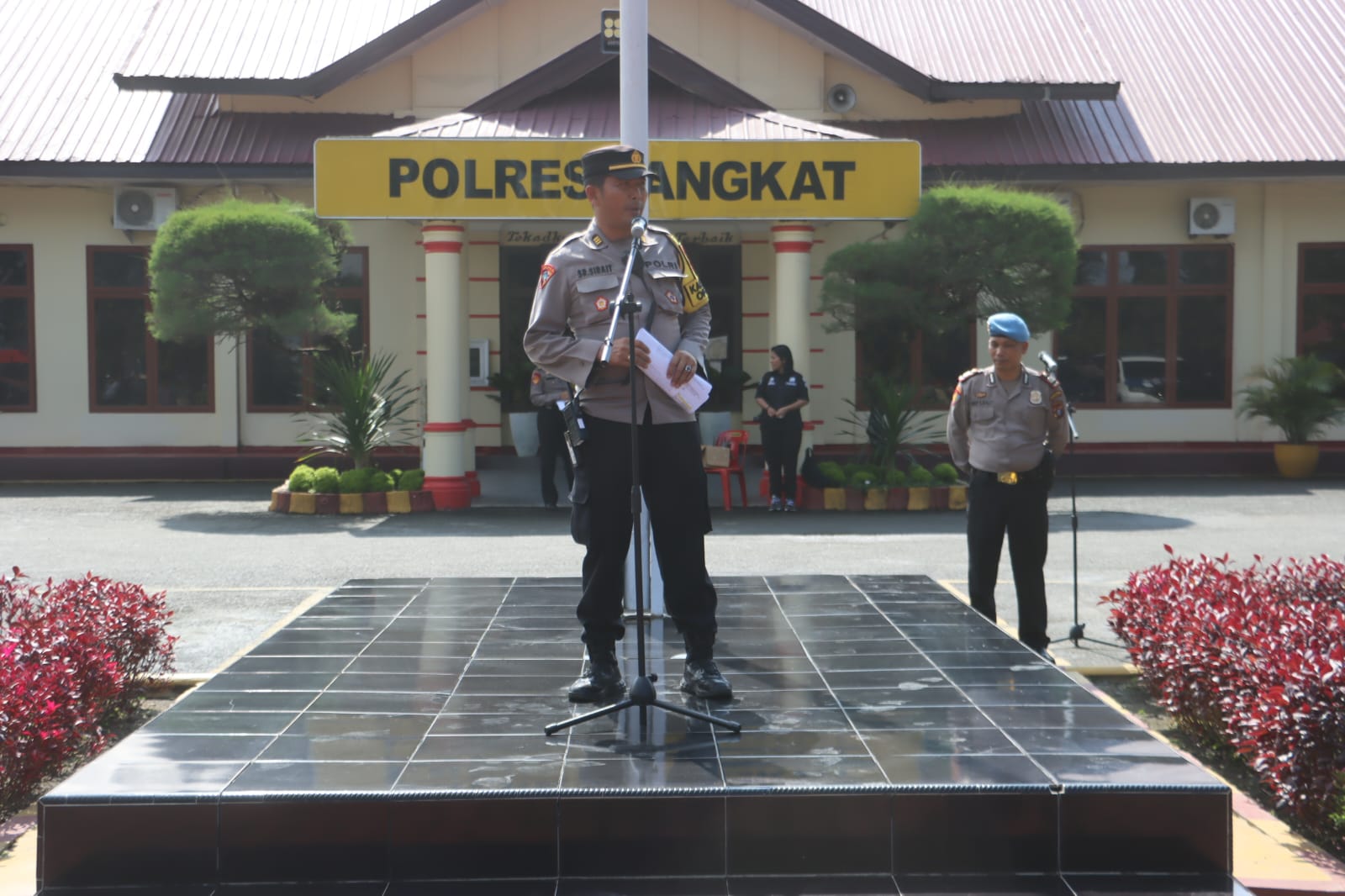 Apel personil Operasi Matap Brata 2023-2024 amankan tahapan kampanye pemilu 2024 dijajaran wilkum Polres Langkat Polda Sumatera Utara dilaksanakan di lapangana Jananuraga pada hari Sabtu (27/01/2024) pukul 10.30 wib.