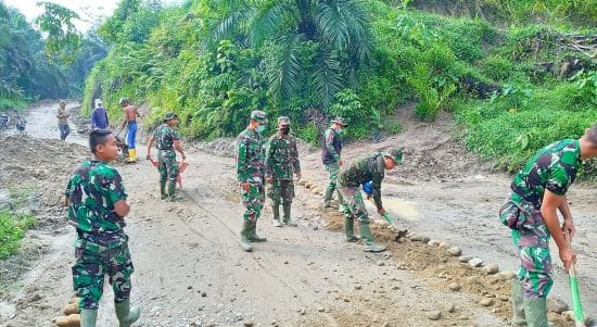 Kreasi Satgas Kodim 0204/DS Susun Batu Koral Jadi Pembatas Tepi Jalan TMMD