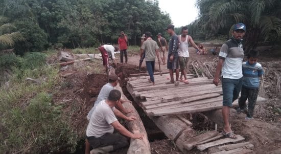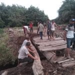 Polsek Panipahan Gotong Royong Perbaiki Jembatan