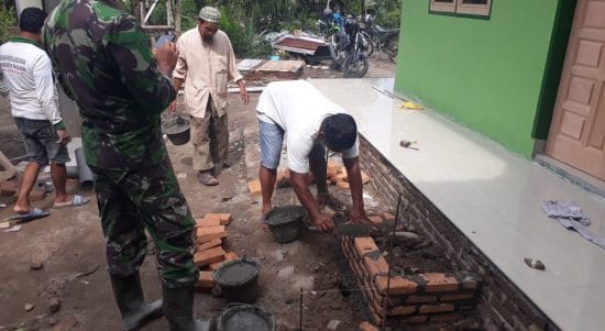 Satgas TMMD Kodim 0204/DS dan Warga Percepat Pemasangan Keramik Teras Al Kahfi