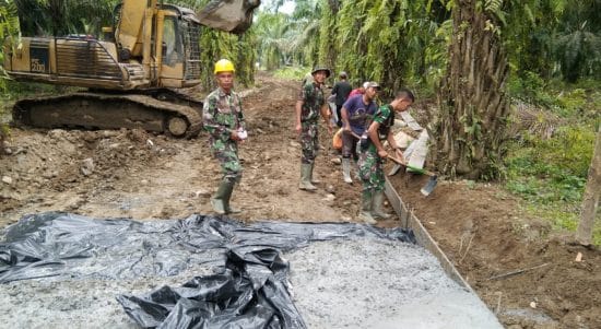 Satgas TMMD Lapisi Bahan Cor dengan Plastik
