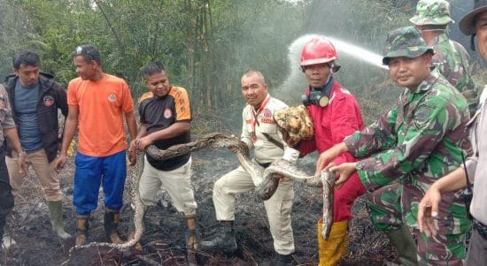 Seekor Piyton Betina Ditemukan Mati Terpanggang di Lahan Gambut Terbakar