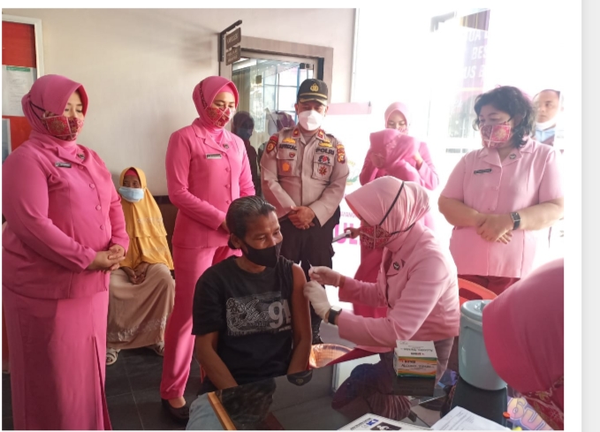 Vaksinasi di Polsek Kateman oleh Bhayangkari ini, Polres Inhil menyiapkan sebanyak 200 dosis vaksin.