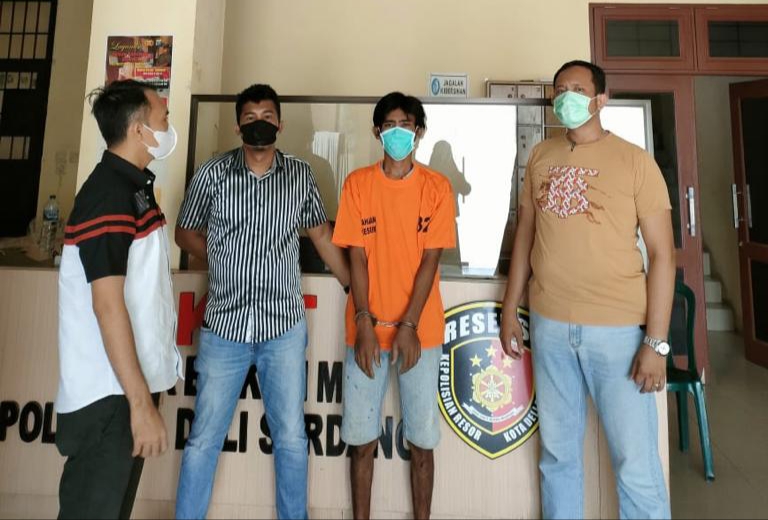 Mendapat laporan tersebut Tekab Polresta Deli Serdang langsung mengamankan pelaku di dekat Pintu Tol Desa Paluh Kemiri Kecamatan Lubuk Pakam Kabupaten Deli Serdang dan membawa pelaku ke Sat Reskrim Polresta Deli Serdang untuk dilakukan penyelidikan dan penyidikan lanjut.