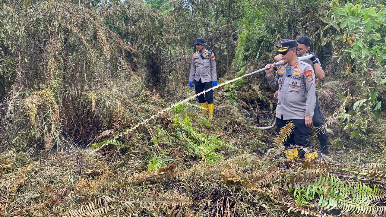 Tengah Puasa Kapolres Indragiri Hilir Polda Riau Berjibaku Padamkan Karhutla