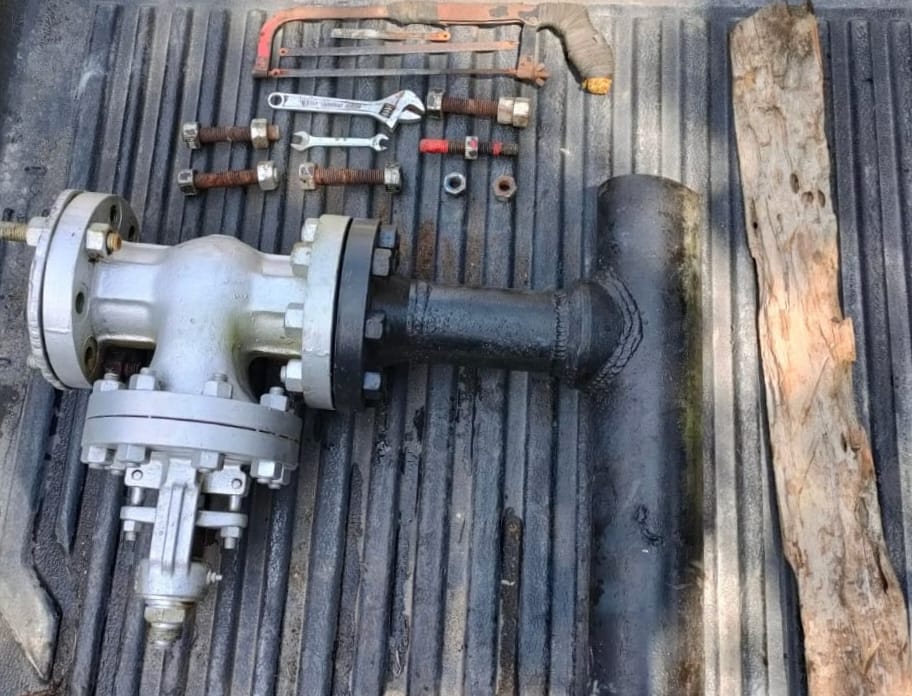Kemudian terlapor beserta barang bukti 1 (satu) batang potongan pipa flow line 4 inci yang terpasang gate valve 3 inci, 1 (satu) buah gergaji besi, 2 (dua) buah anak gergaji besi, 1 (satu) batang kunci inggris, 1 (satu) batang kunci pas ukuran 10-12, 1 (satu) batang kayu broti yang panjangnya sekitar 1 meter dan 1 (satu) unit sepeda motor merk Honda tipe Supra X 125 cc warna hitam kombinasi biru dan putih tanpa Nopol langsung diboyong ke Polres Rokan Hilir.